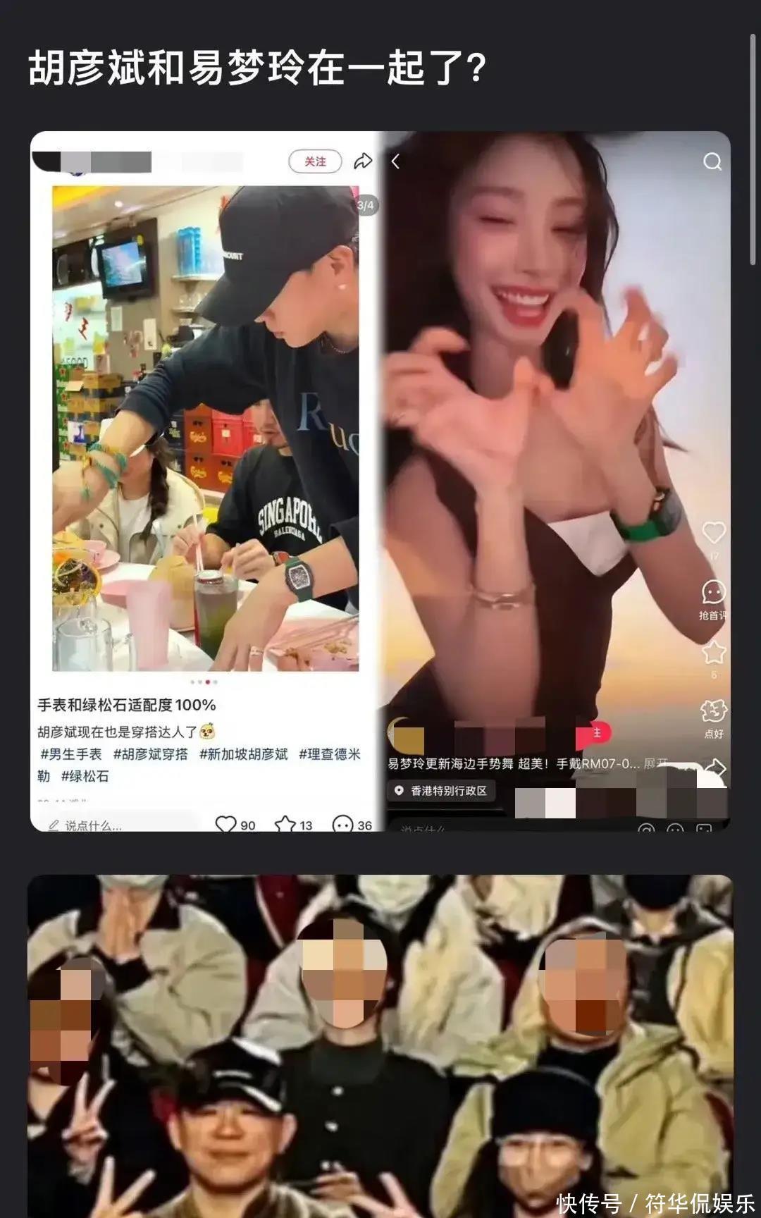 网友还扒出两人早就有交集,一起去看了张一山主演的《一地鸡毛》话剧,易梦玲主演郝蕾导演的《诛》时,胡彦斌也去了现场。两人还有同款墨绿色手表、同款绿松石、同款墨镜和香水,不知道是商务合作还是情侣款。